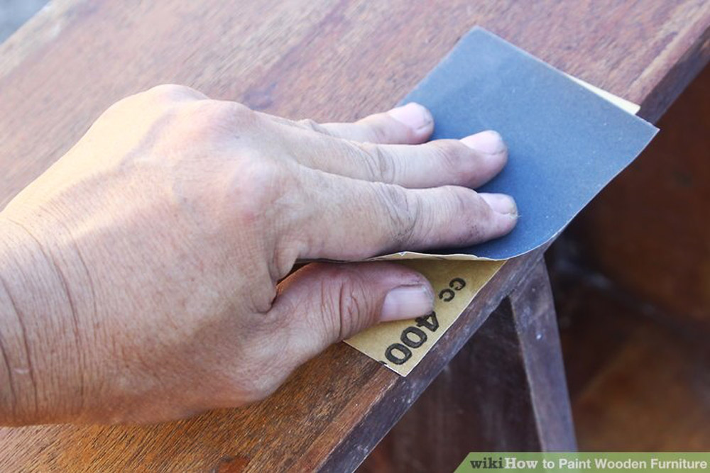 Sand the surface of the wood with coarse sandpaper and finish off with fine sandpaper. Start by sanding down the area where you’ve used putty or filler before moving to the rest of the surface for an even feel.